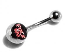 Banánek se vsazeným nápisem "FUCK ME", vyroben z chirurgické oceli 316L. Průměr kuliček - 5 a 8 mm.