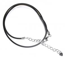 Černý kaučukový náhrdelník v kulatém profilu s ocelovým uzávěrem. Vhodný k zavěšení výrazného přívěsku. Řetízek napomáhá k upravování délky v rozmezí 47 - 54 cm. Průměr kaučukové části: 2 mm. Průměr ocelového uzávěru: 4 mm. Délka řetízku: 75 mm